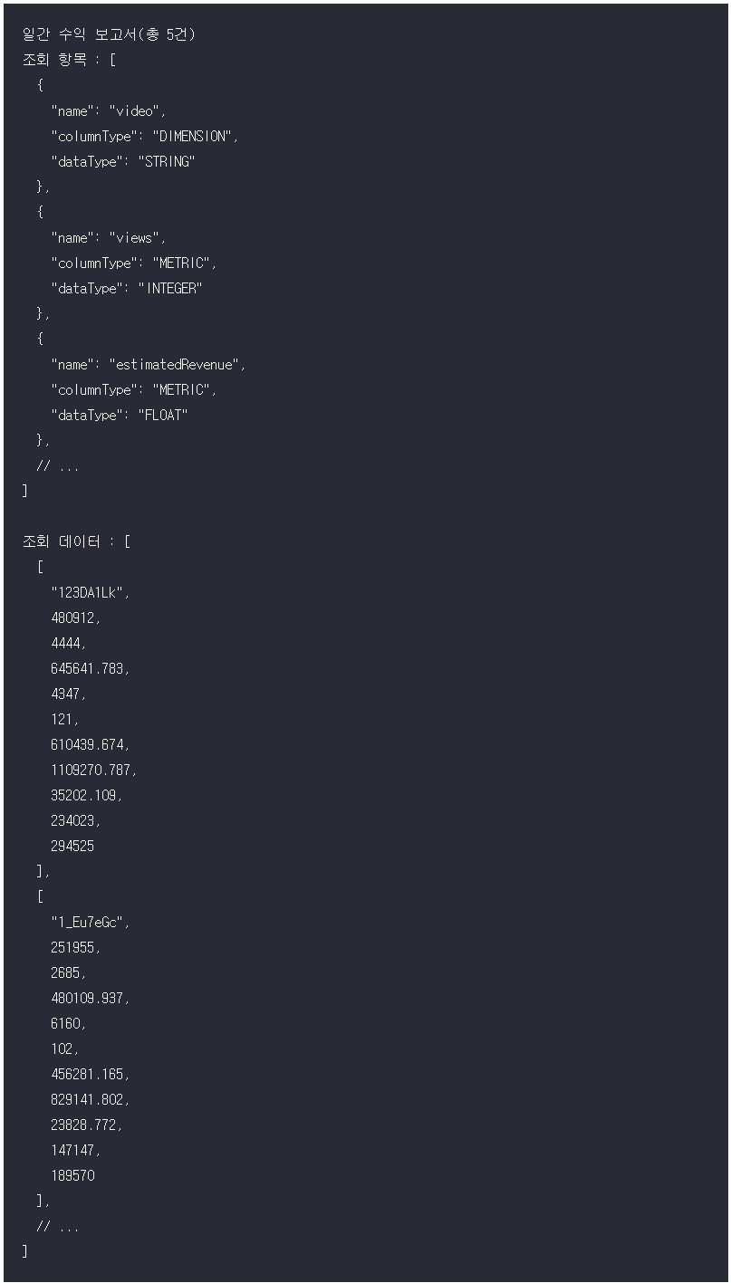 > 콘텐츠 소유자 보고서 : https://developers.google.com/youtube/analytics/content_owner_reports
