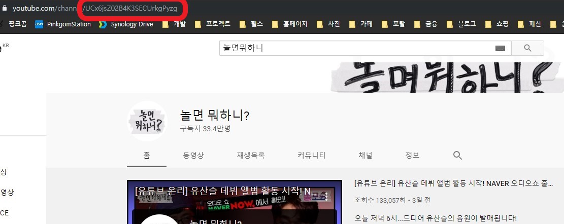 1. 유튜브 사이트에서 검색을 통해 '놀면뭐하니?' 채널 아이디를 얻어온다.