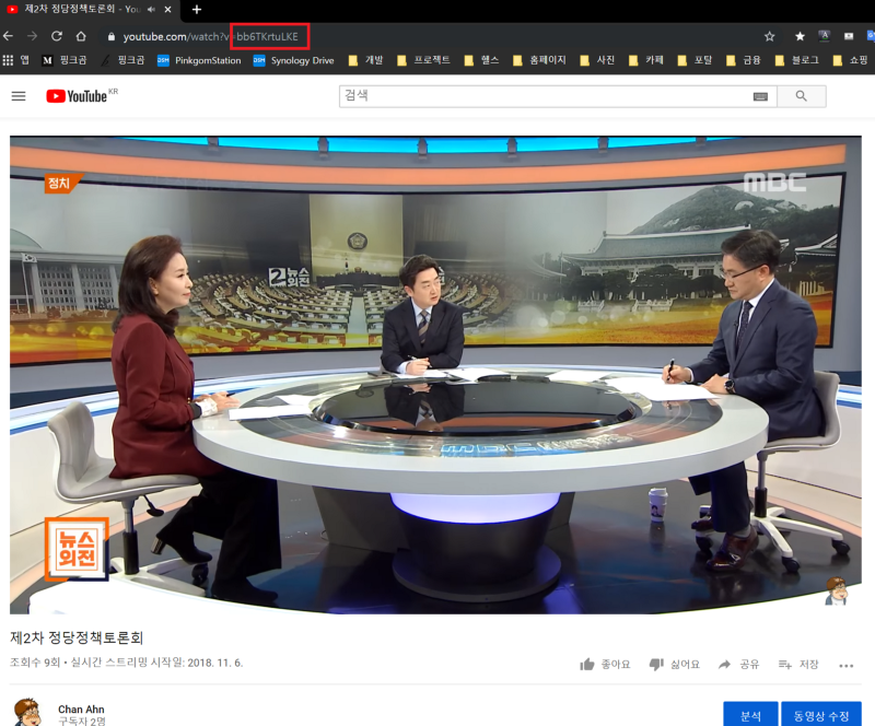 2. 유튜브에서 재생목록에 추가할 영상의 아이디(bb6TKrtuLKE)를 확인한다.